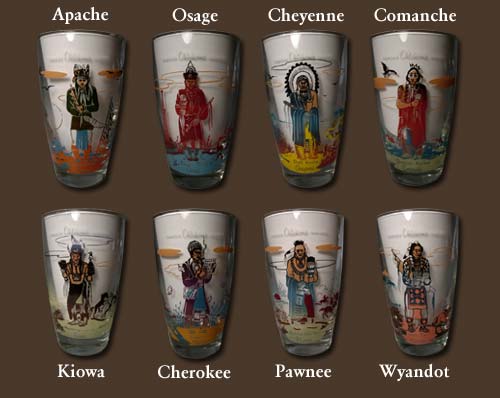 Vintage Blue Eagle Oklahoma Native American Indians Pitcher And Glass Set