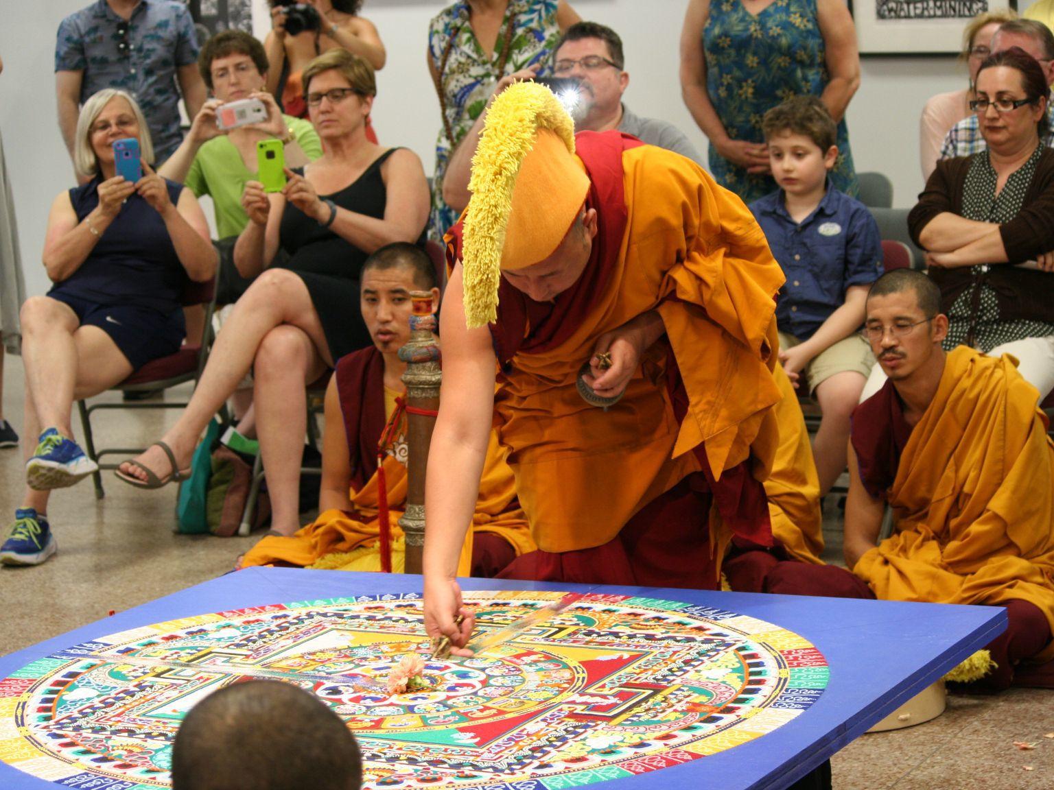 Mandalas constructed from sand are unique to tibetan buddhism and are believed to effect purification and healing. The making of a sand mandala comes from an ancient tibetan buddhist tradition involving ritual geometric patterns made from colored sand. Buddhist monks from tibet who spend their lives going from place to place from occasion to occasion making sand mandalas sacred cosmograms that originated in india over 2500 years ago are coming to gannon university in erie pennsylvania.