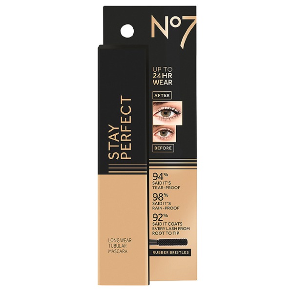 No7 stay perfect mascara contains unique tubular technology for long lasting life proof lash perfection lasting up to 24 hours. Each eyelash is individually wrapped with a special film which creates tiny elastic tubes around your lashes for greater volume and length. No7 stay perfect mascara.
