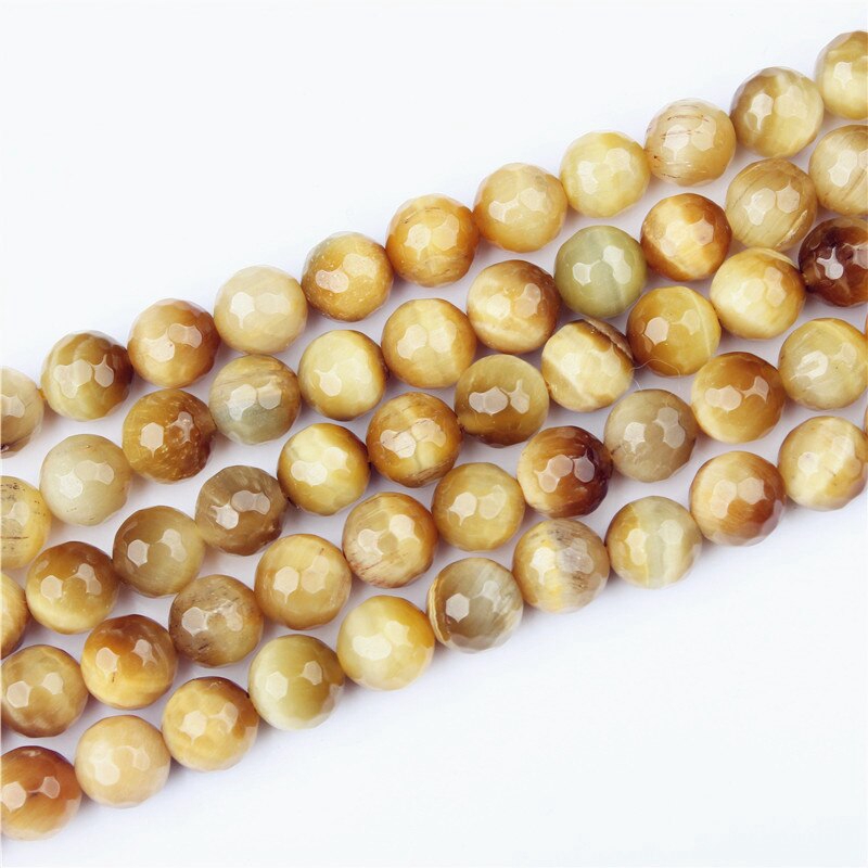 Wholesale Golden Tiger Natural Gemstone Bead Faceted Round Bead Bracelet Necklace Earring Diy Making Shopee Malaysia